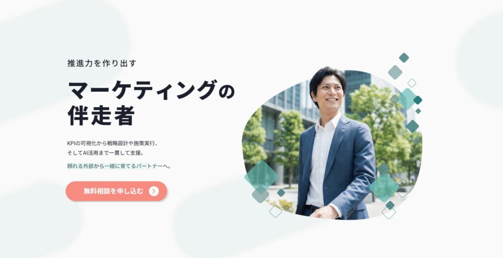 戦略から運用などのノウハウを提供して、現場の育成や仕組みの設計までの長期的に自立できるマーケティングの組織づくりも支援してくれます。