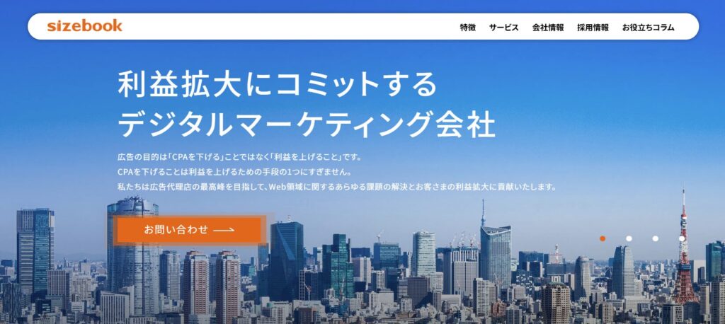 株式会社sizebook は、Webマーケティングのコンサルティング、サイト、クリエイティブ制作などを一括で依頼できる会社です。